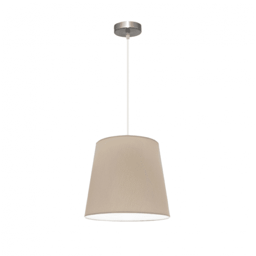 Colgante de la serie MALDIVAS en color CROMO/PIEDRA. Realizado en textil y metal. Posee un porta lámparas E27. Bombilla no incluida. Tiene unas dimensiones, regulable en altura, de 50<,90x40x40 centímetros. En esta serie encontramos pie de salón, sobremesa y colgantes de 40 cm y 35 cm de diámetro, todos con combinaciones de colores con metales de color cromo, níquel, cuero y blanco, para elegir la que mejor se adapte a su decoración.