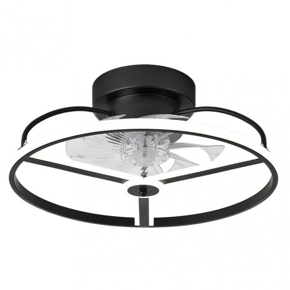 Ventilador de la serie BORA color NEGRO, con ocho aspas transparentes y 6 velocidades. Motor DC. Realizado en metal, ABS y policarbonato. De diseño muy moderno y original. Tecnología LED integrada con 60 watios de potencia , 5100 lúmenes, con 3 colores de luz y REGULABLE EN INTENSIDAD (3000ºk-4000ºk-6000ºk). Incluye MANDO A DISTANCIA, con MEMORIA DE COLOR incorporada y TEMPORIZADOR 2/4 H. Sus dimensiones son 21x50x50 centímetros. En esta serie, disponibles en color negro, blanco y dorado.